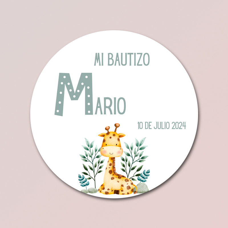 Chapas personalizadas bautizo – Jirafa