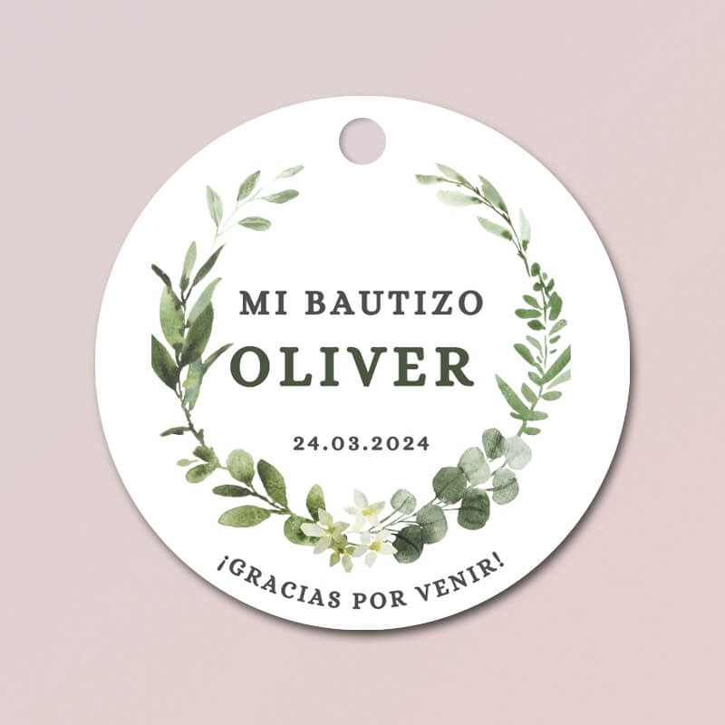 Chapas personalizadas bautizo – Eucalipto