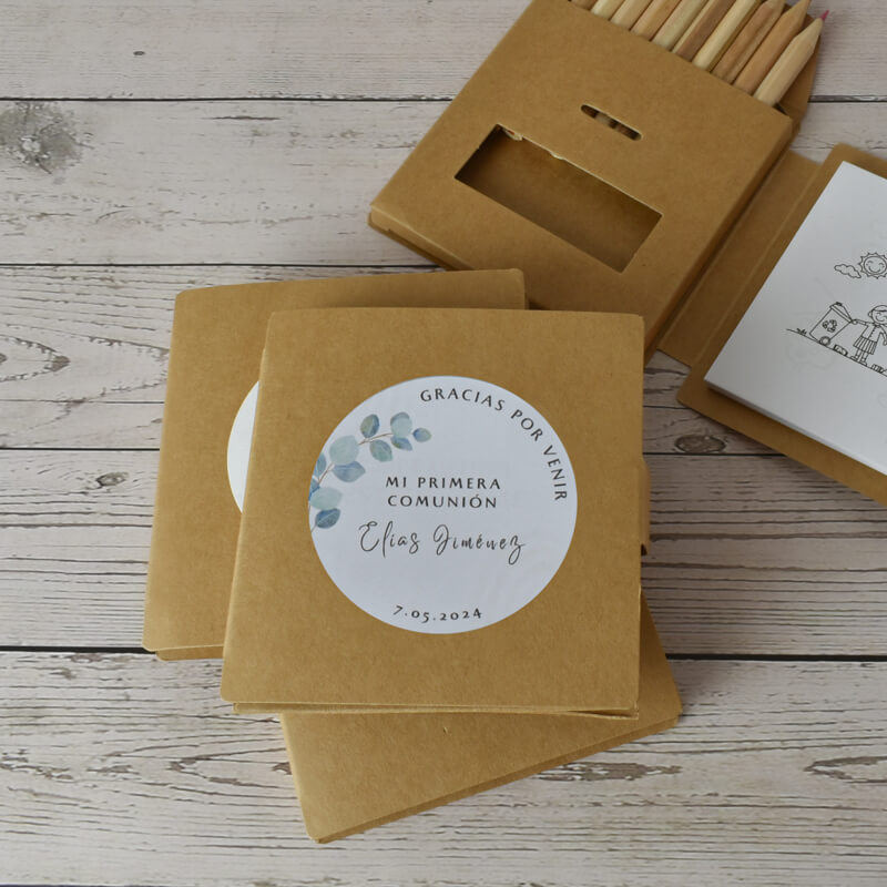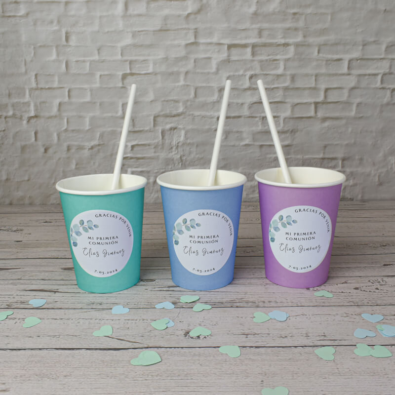 Adhesivos redondos personalizables  con el nombre y la fecha. Ideal para añadir un toque de originalidad a tus proyectos, eventos o regalos. Personaliza los detalles de la fiesta como vasos, tarros de chuches, bolsitas..