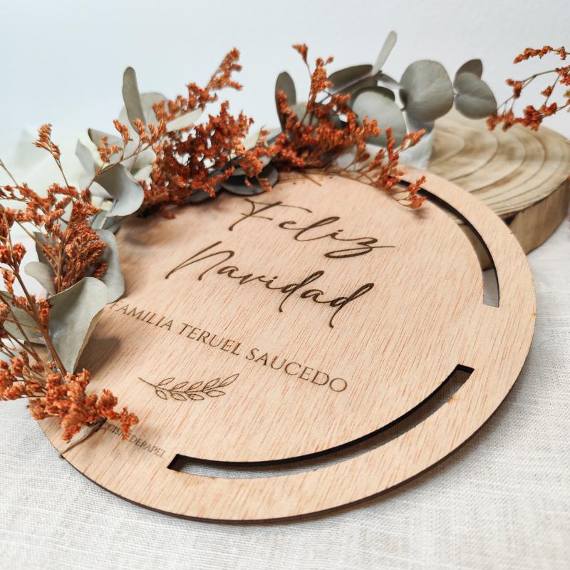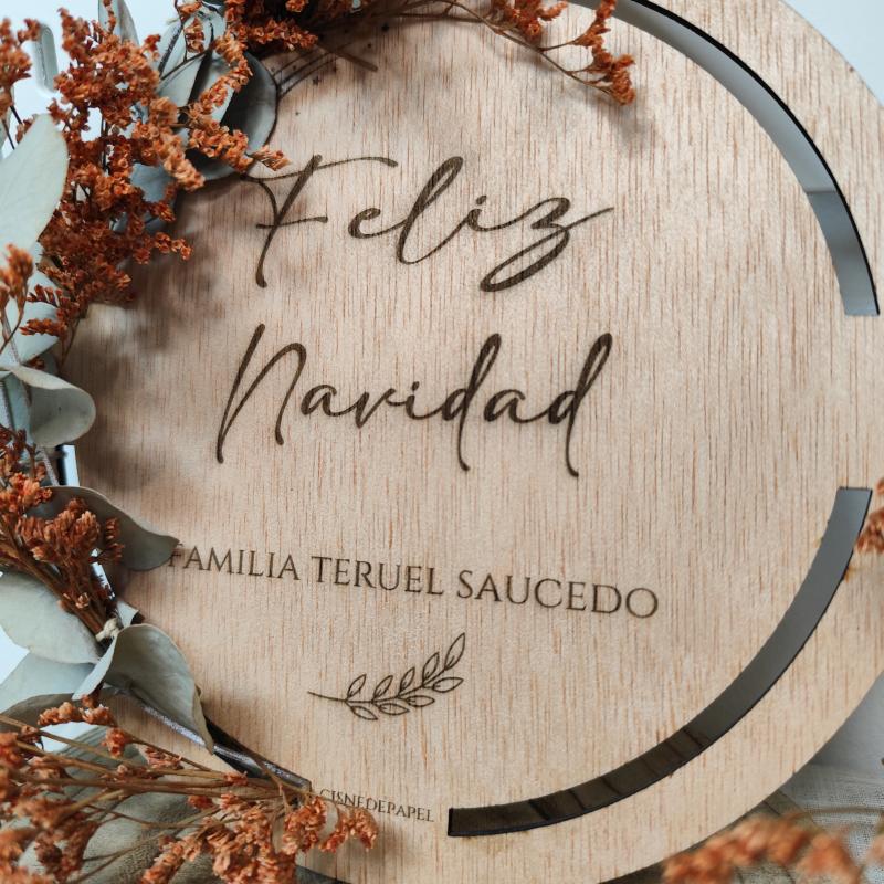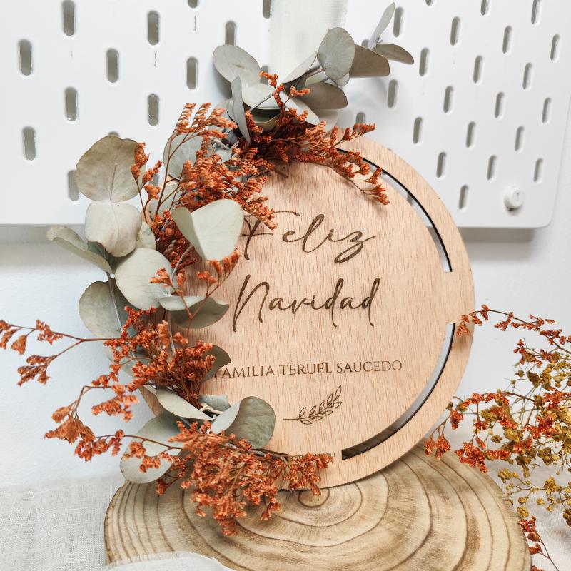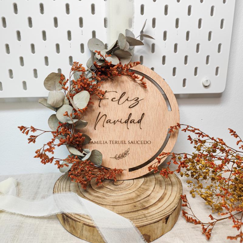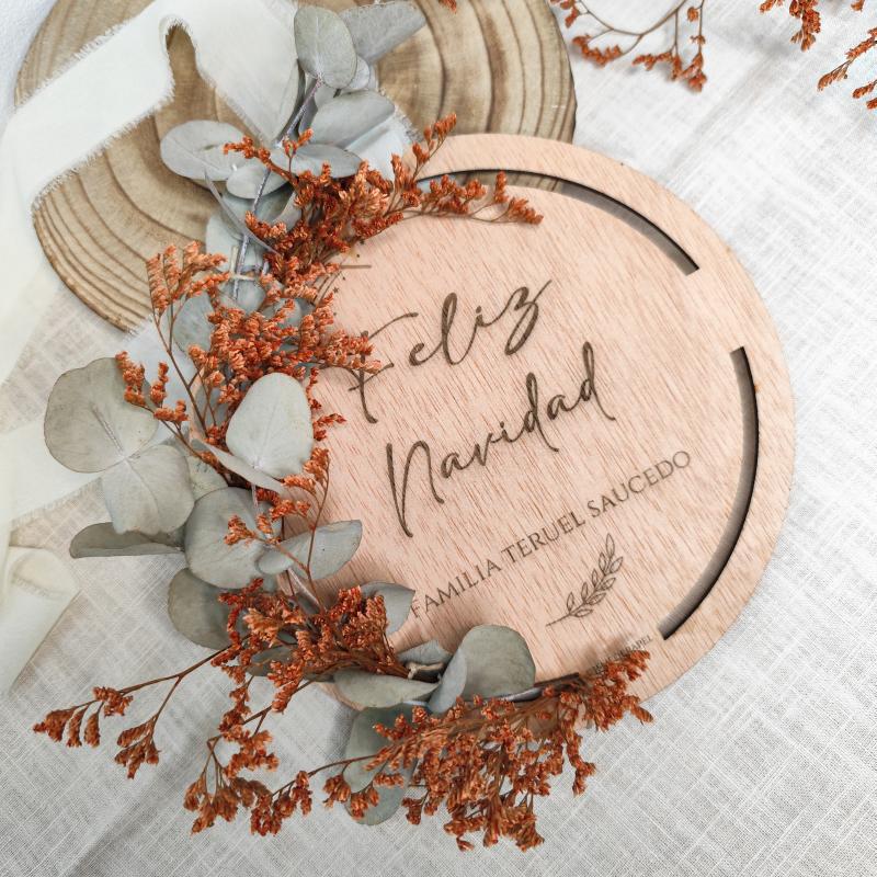 Nuestra corona de Navidad personalizada en madera está diseñada para decorar tu hogar con un toque natural y muy especial. Personalízala con el nombre de tu familia o la palabra que elijas, y convierte cualquier rincón en un espacio lleno de magia navideña.