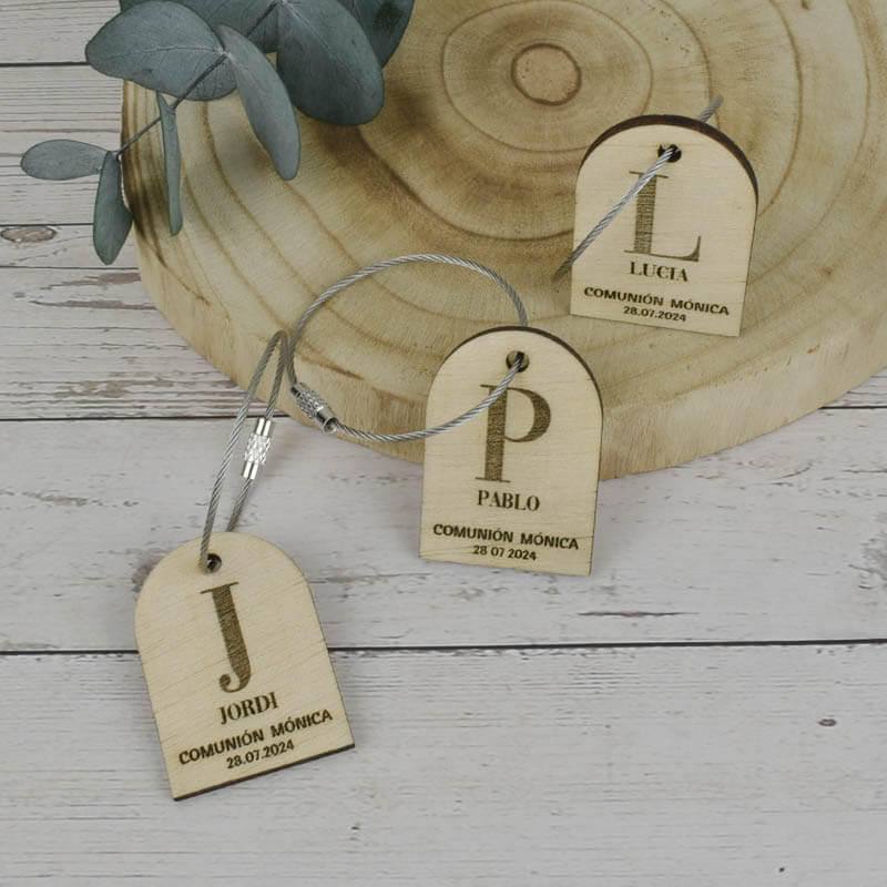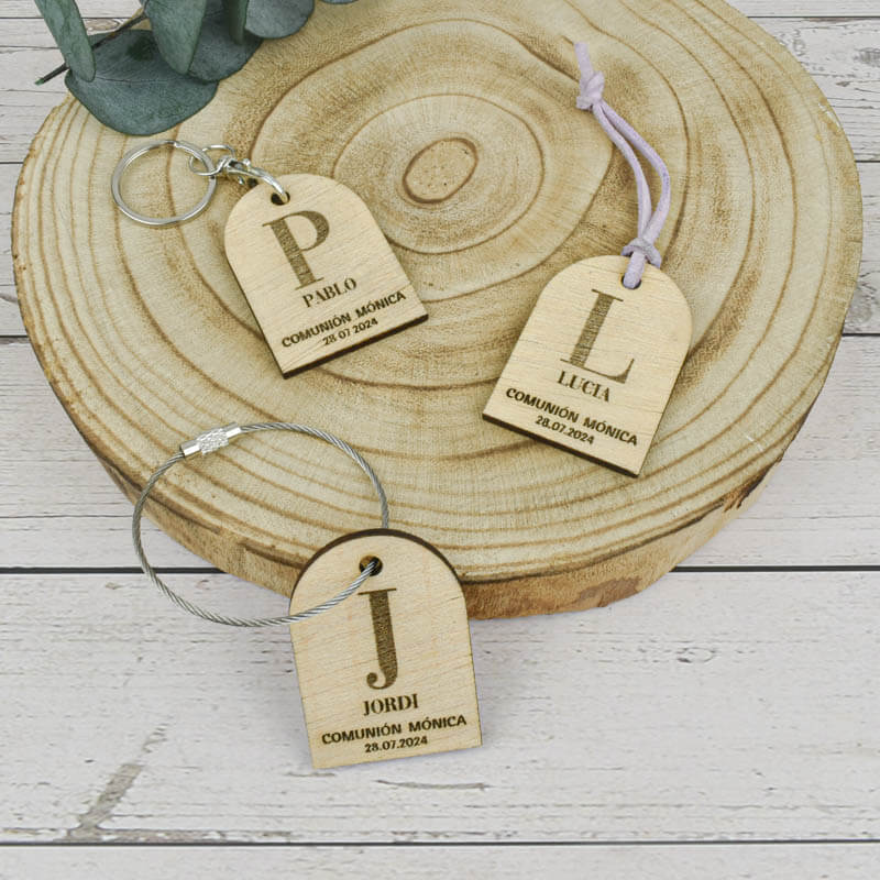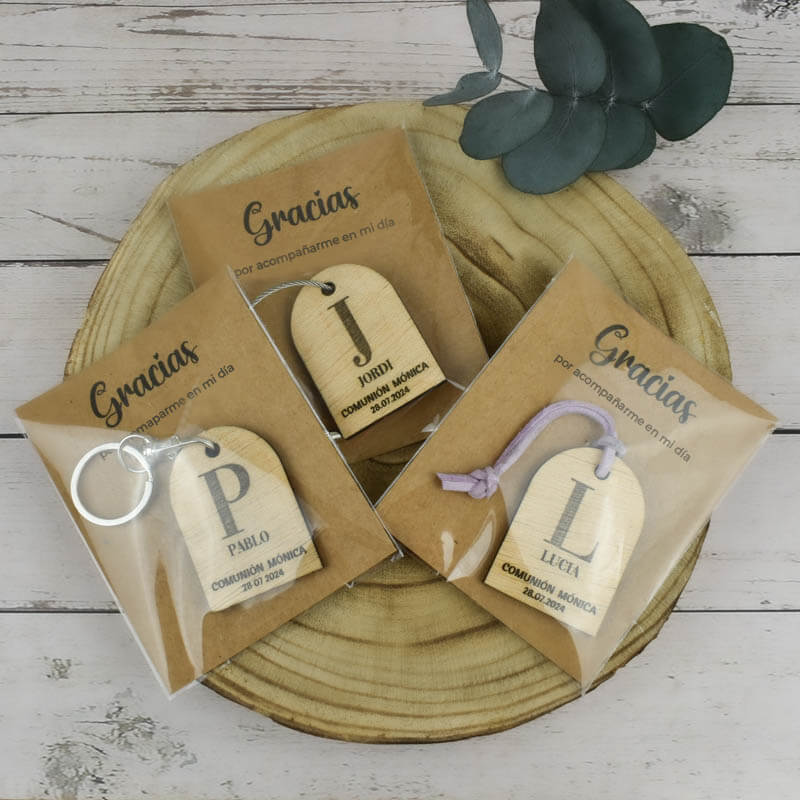 Nuestros llaveros de madera natural, son el recuerdo ideal para una comunión.