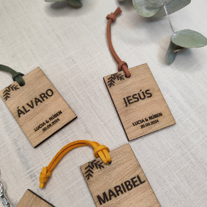 - Para el cordón de ante, al enviarnos la lista de invitados o ponernos en contacto con vosotros, podréis indicarnos el color deseado. Podéis escoger un único color para todos o combinarlos según vuestras preferencias.