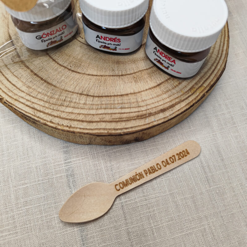 Además, cada unidad se acompaña de una elegante cuchara de madera grabada, perfecta para disfrutar de este dulce capricho en cualquier momento.