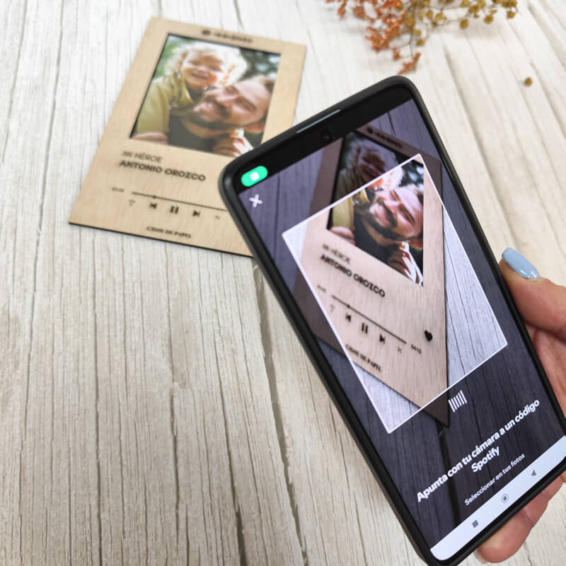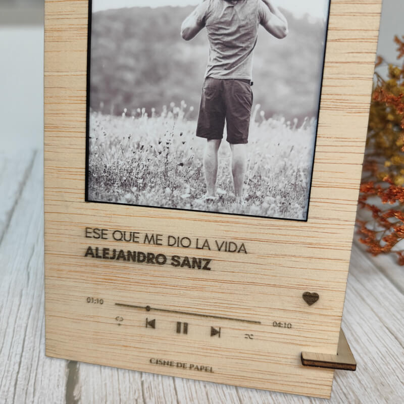 Marco personalizado de madera estilo Spotify.