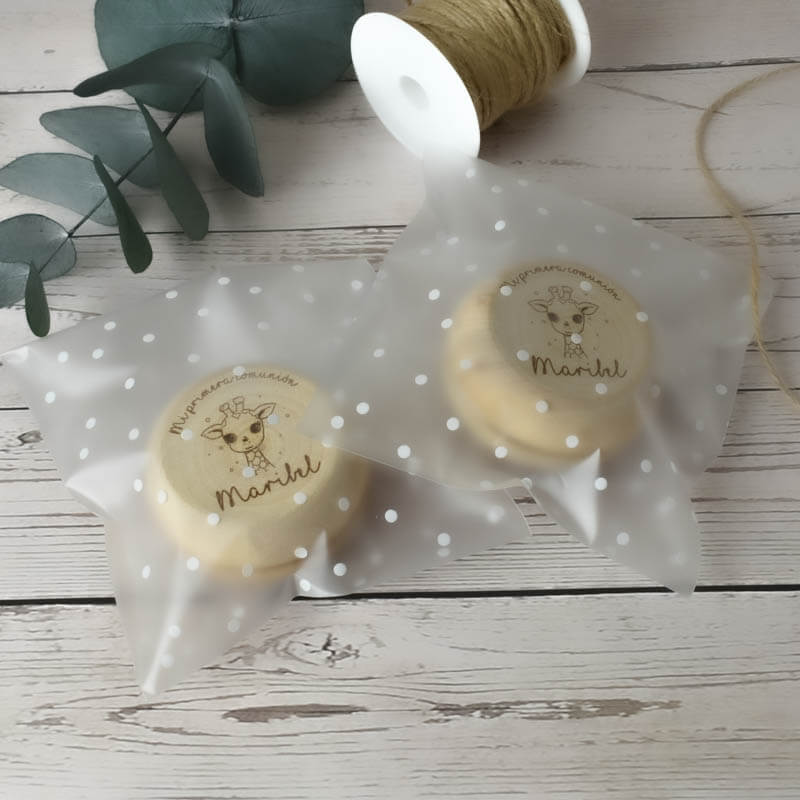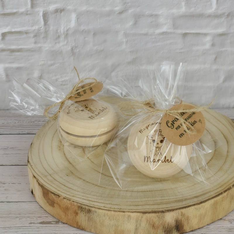 Haz que los más pequeños se diviertan y recuerden la celebración con estos encantadores yoyos de madera personalizados.