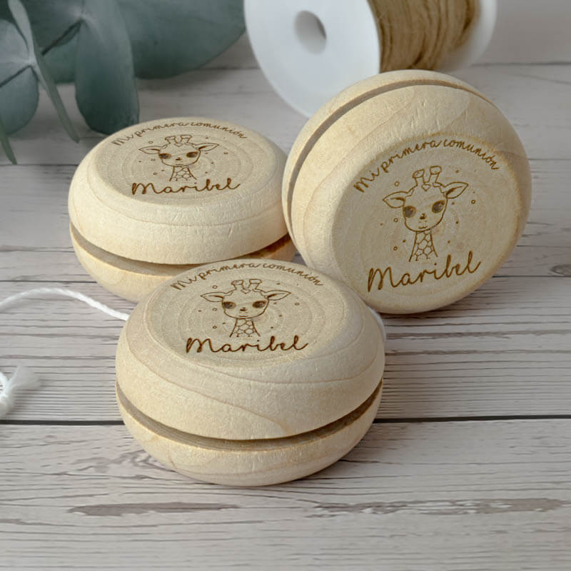 Cada yoyo está cuidadosamente grabado con el nombre y la fecha de la comunión, convirtiéndolo en un regalo especial y único.
